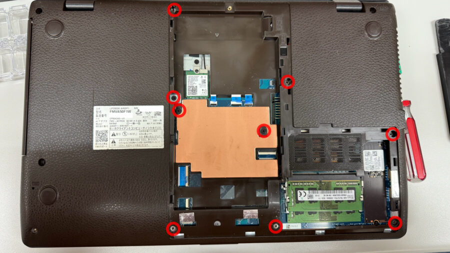 バッテリを外すとネジが出てくるので計9本のネジを取り外します。