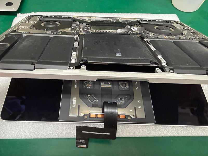分解調査を行ったところ、ACアダプターやマザーボード不良ではなく、バッテリー不良により充電されないことが判明したので、お客様へ診断結果と修理内容をご説明し、